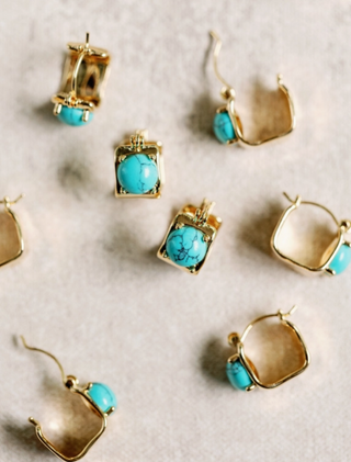 Vintage Mini Square Gold and Turquoise Huggie Hoop