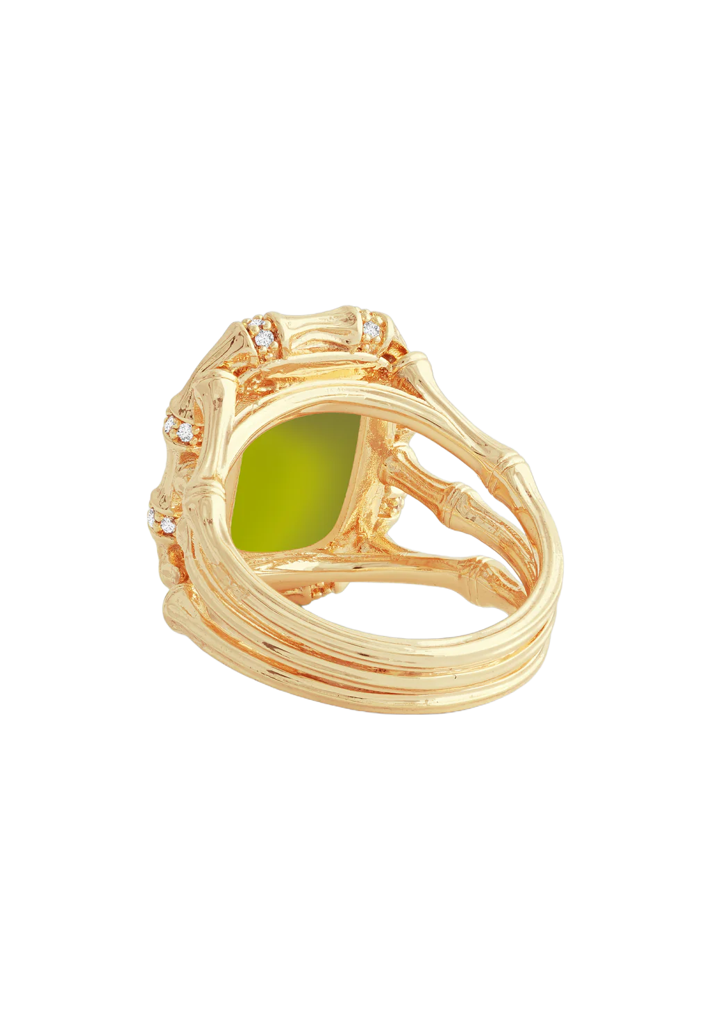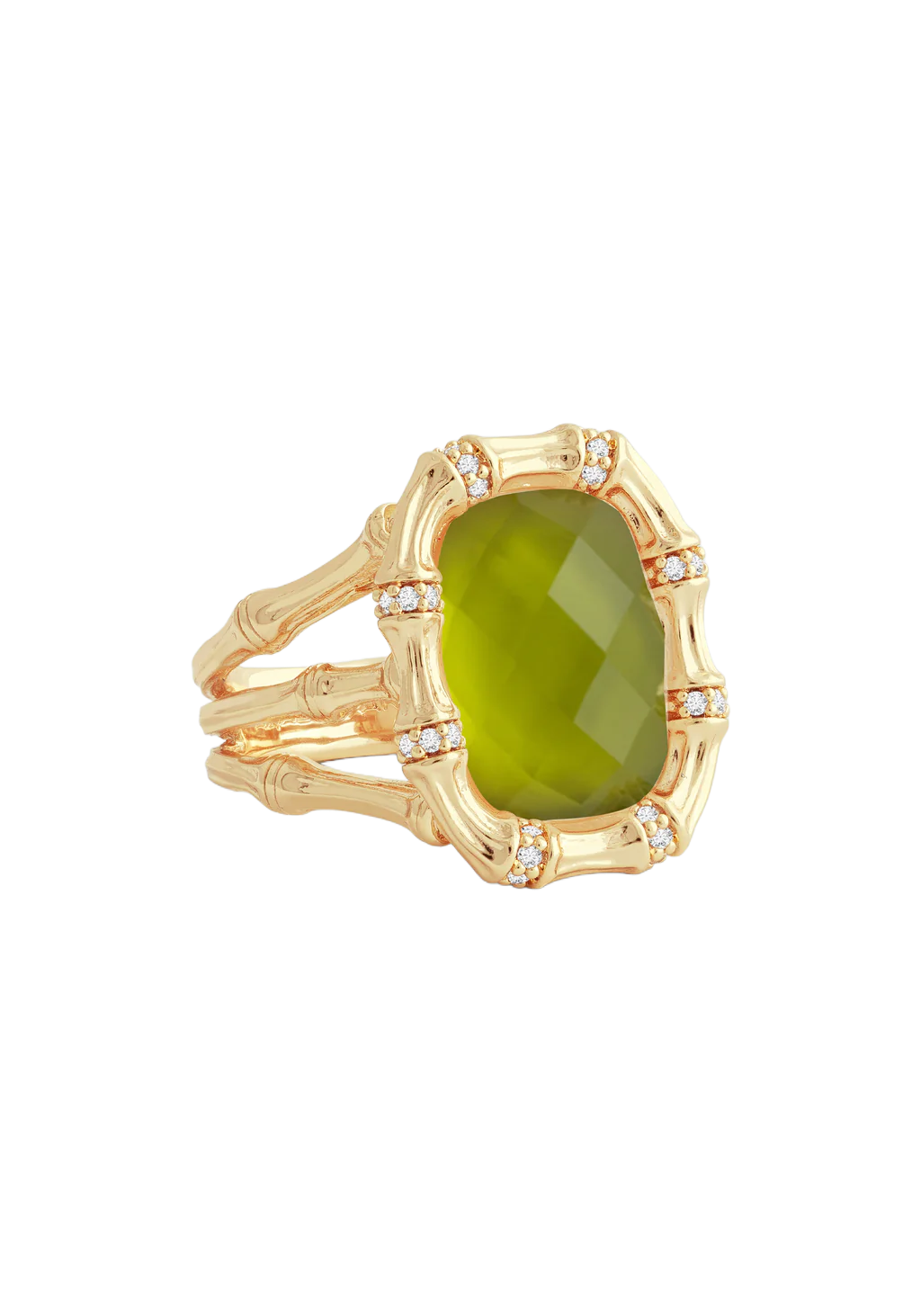Crafted with exquisite detail, the Bamboo with Stone Ring is effortlessly designed with 18K gold dipped brass, hand-placed pavé crystals, and stunning stones in four color ways to create a luxurious and timeless accessory suitable for any style or occasion.
