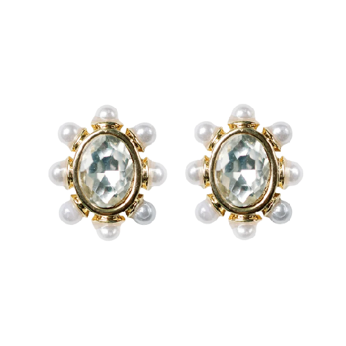 Vintage gold tones are among this year's biggest trends, and we are delighted to introduce our newest stud earrings featuring a crystal center, outlined by delicate pearls. This mini style, perfect for everyday wear, is 1/2 inch in size and perfect for all seasons.