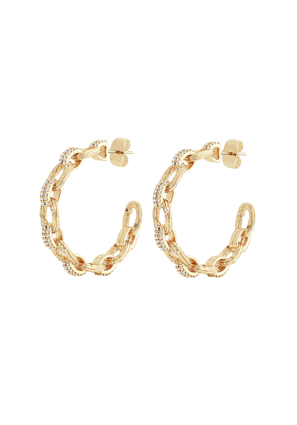Perfectly sized for everyday wear, the Enchanted Forest Chain Hoop Earrings combine crystals with 18K gold plated brass for a look that is both graceful and modern. The signature Enchanted Forest earrings, now designed in delicate hoop, shine and sparkle with every movement, evoking a sense of timeless glamour.