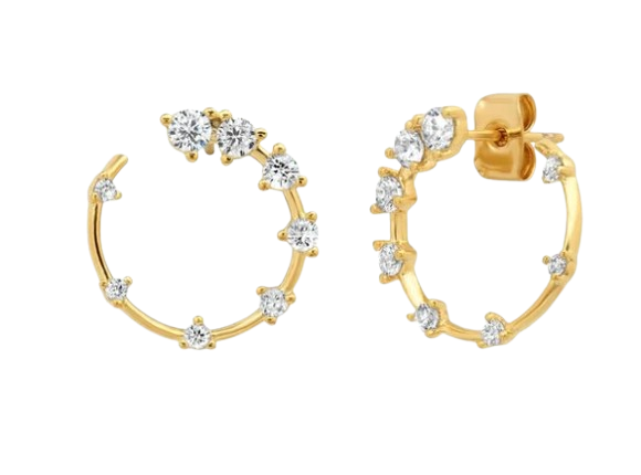 A twist on a classic hoop, this front facing hoop with scattered CZ accents is a stunning must have!