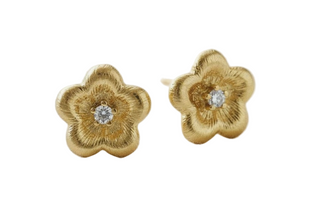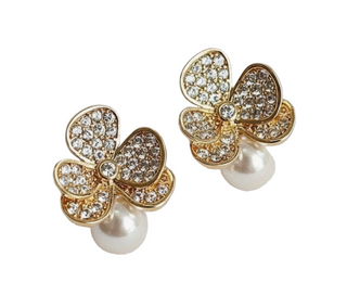 Hoop Earrings - Medium - Gold-Plated Flowers W/Pearls - Kali