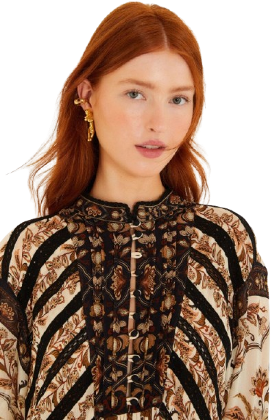Step into a whimsical garden with the Sand Majestic Garden Lace Long Sleeve Mini Dress from FARM Rio. Its delicate lace fabric blossoms in soft sand tones, wrapping you in a romantic high neckline and airy long sleeves. The playful silhouette flows effortlessly above the knee, while intricate floral patterns add a touch of handcrafted charm. Perfect for those who cherish elegance blended with a joyful, free-spirited vibe.