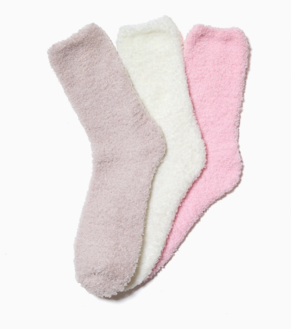 Triple the comfort, triple the indulgence. This 3-pack of Plush Cozy Socks is crafted from an ultra-soft, cloud-like knit designed to wrap your feet in warmth. With a gently snug fit and luxe feel, each pair is perfect for lounging, gifting, or layering into your cold-weather wardrobe. Neutral tones make them endlessly wearable, while the plush texture feels like a little luxury - every single day.