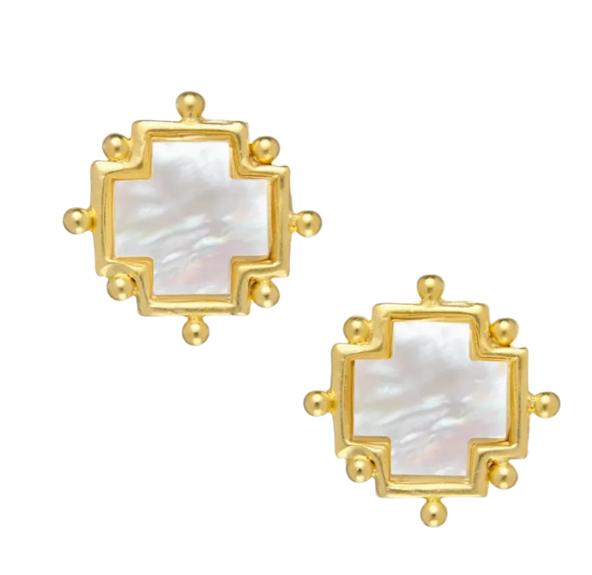 Discover the sophistication of Susan Shaw's Mother of Pearl Cross Studs. These studs, falling under the men's jewelry category, carry an air of elegance and refinement. Designed by Susan Shaw herself, a designer with over three decades of experience, these pieces reflect the high-quality craftsmanship synonymous with the brand. Inspired by Northern European styling and American-made materials, these studs are the embodiment of Susan Shaw's commitment to quality and customer satisfaction. Own a piece of this exquisite collection today.