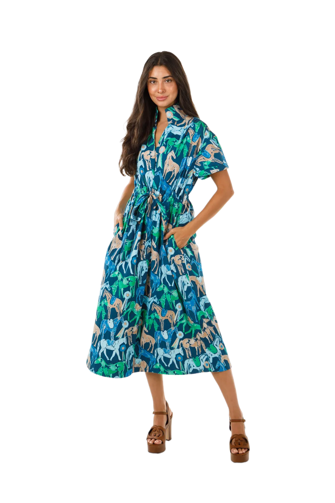 Meet Bria, our newest lady in the HS line and a bestseller for stores across the country! The Bria dress was designed with feminine ease in mind. Classic style elements like a stand collar, wide self belt, covered placket and elongated cap sleeves with a pleated shoulder. This modern take on a classic dress with an empire waist will not disappoint and will be your go-to for all events!