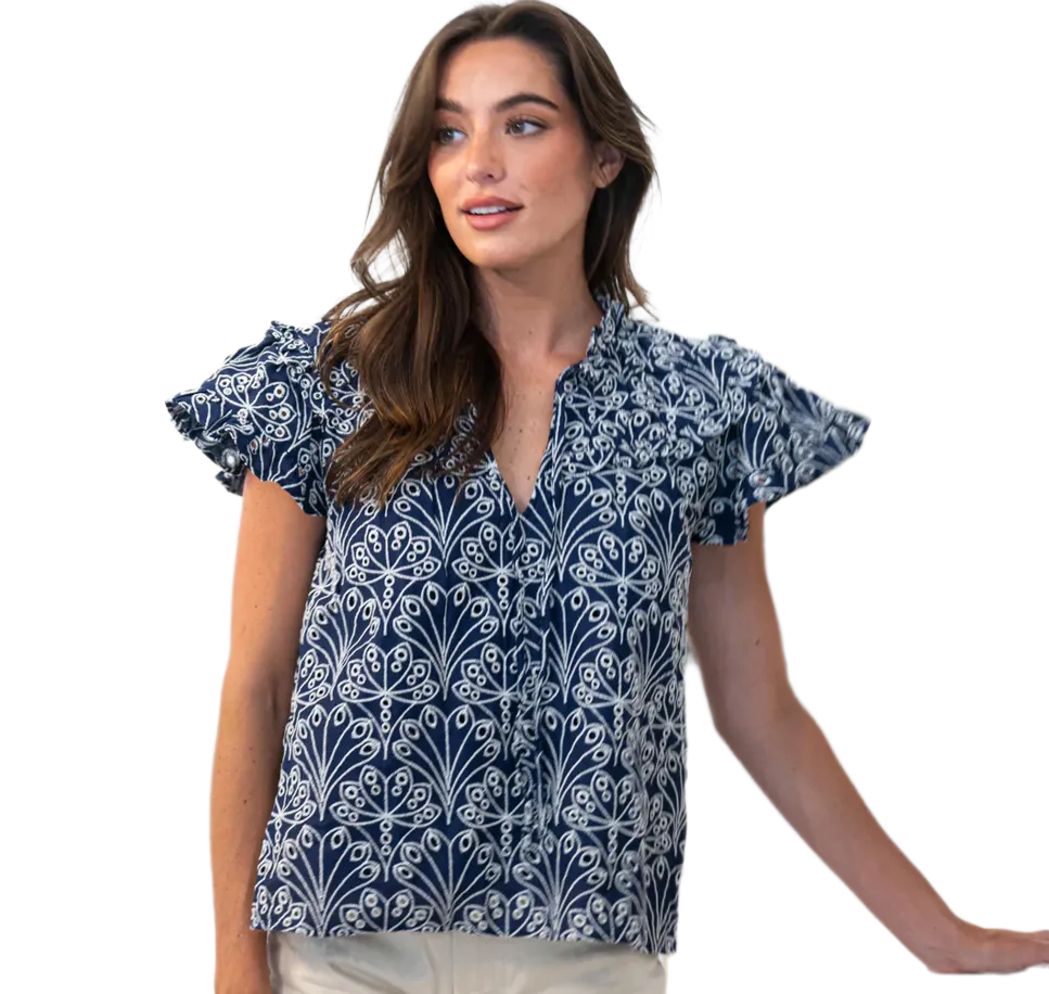 Meet the latest iteration of our Flutter Sleeve Top! Every classic closet needs a polished top to make getting ready a breeze. Designed to take the guesswork out of putting together a timeless look, you will find us pairing this custom shell eyelet with our favorite crisp, white denim for casual dinner parties and fun spring outings.