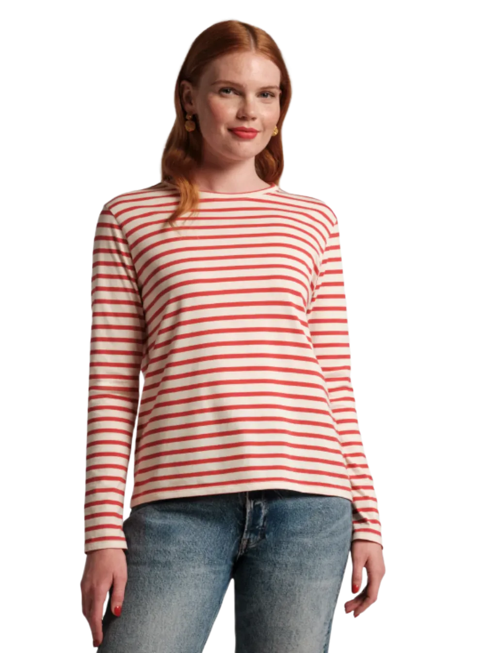 Our fan-favorite Long Sleeve Striped Tee Shirt is constructed in soft pima cotton, and is a great layering piece for chillier days or paired on its own with a pair of your favorite jeans for that effortlessly chic look.