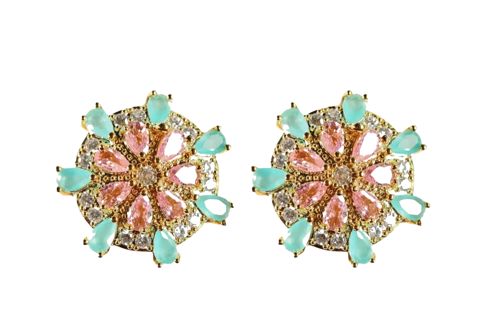 Pink and Turquoise Sparkling Sand Dollar Stud Earrings
