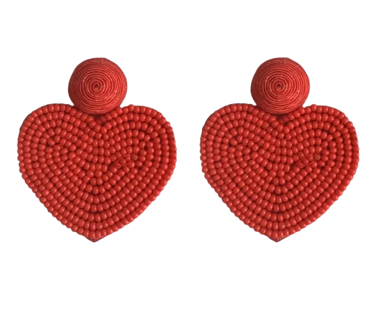 Red Valentines Day Holiday Beaded Heart Statement Earrings