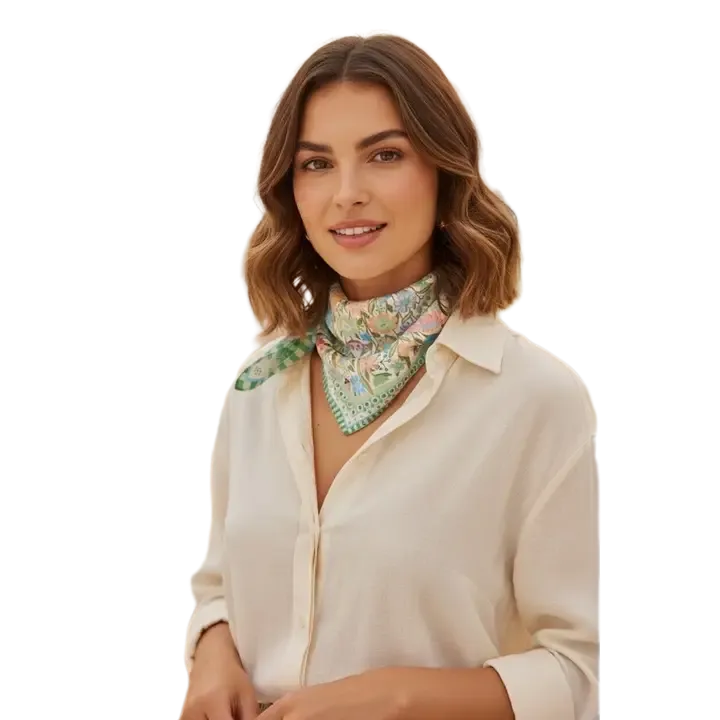 This Retro Floral Print Bandana features a lively arrangement of whimsical, vintage-inspired blooms and foliage, framed by a playful geometric border, and made with a soft, lightweight fabric. It can be tied around the neck to add a cheerful, nostalgic touch to a graphic tee and denim skirt for a retro-themed picnic, or worn as a headband to keep hair in place during a day at the farmers’ market. Its compact, portable design also makes it easy to tuck into a bag, ready to elevate any outfit with a fresh, retro charm.