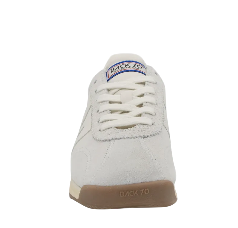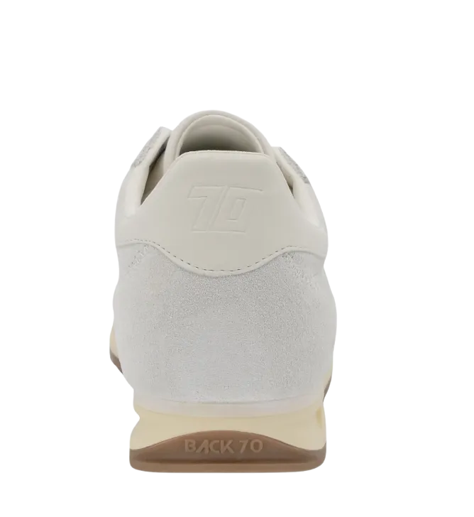 Lightness engineered for movement, Runner is a well balanced sneaker that blends form and function. Fluid design and an uplifting energy are shaped with cocooning, modular structures and abstract shapes found embedded within a calming, monochrome palette. Hand crafted in exceptional quality materials, this style elevates organic casual wear and utility basics, unearthing an authentic softness that echoes complexity and dimension. Featuring a lightly elevated sole, Back 70¿s heritage label and signature emblem.