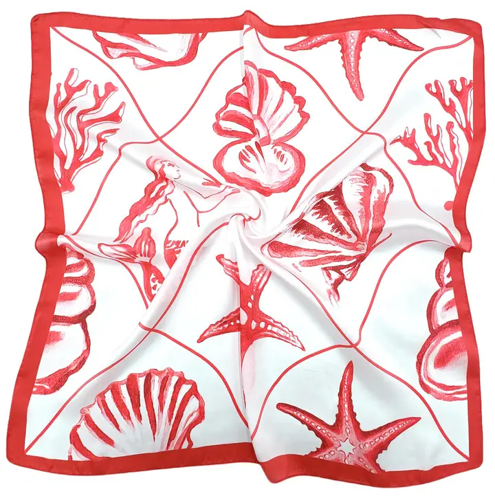 The Sea Shell Square Scarf is a stylish addition to any woman's wardrobe. Made from 100% polyester, this scarf is a versatile accessory with its dimensions of 27.6 x 27.6 inches. It can enhance your outfit with a touch of elegance.