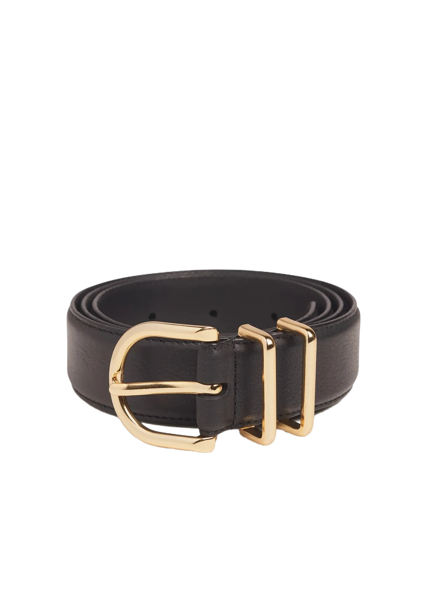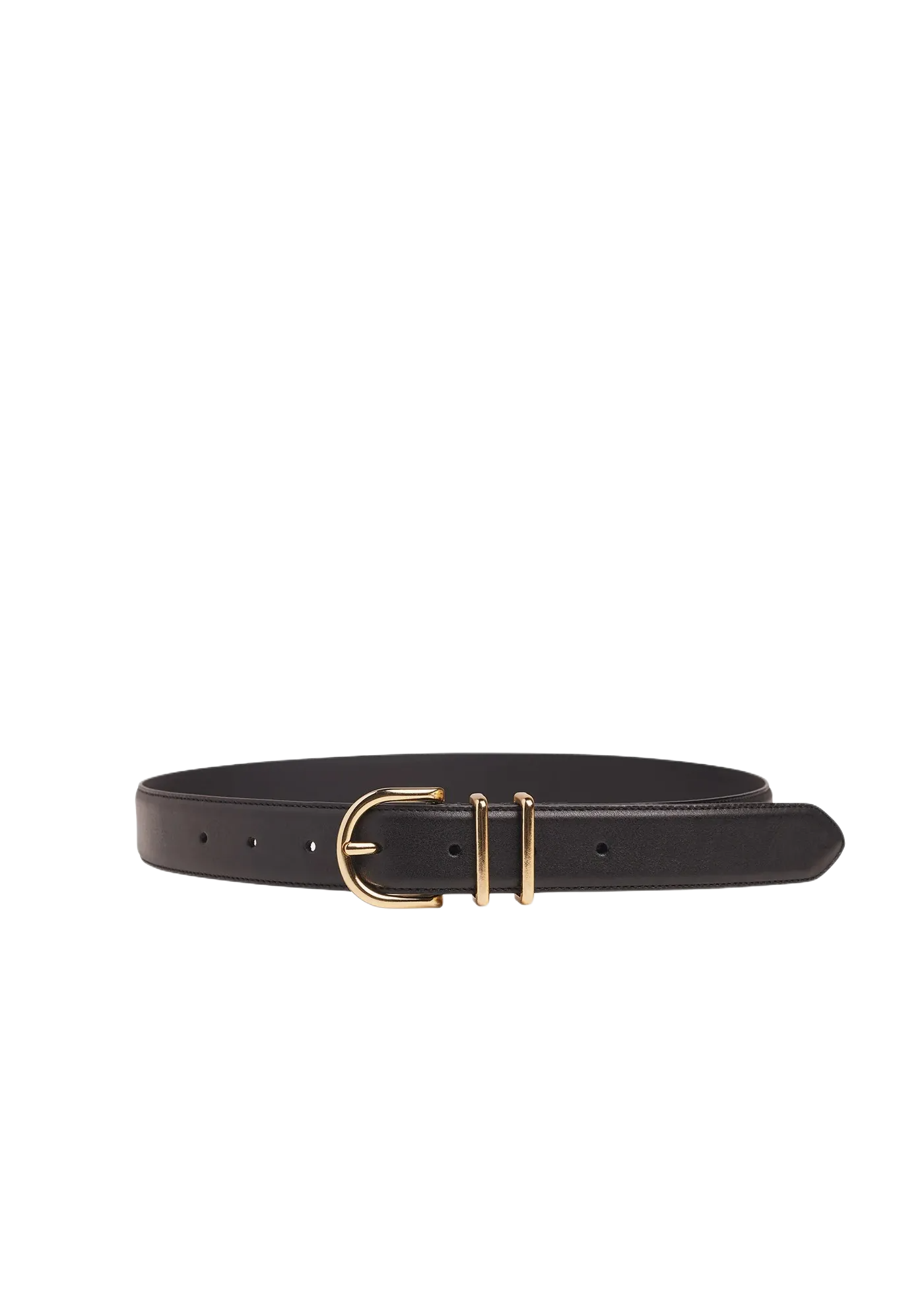 It's the belt that makes any outfit feel a little fancy. The 30 mm stitched feather-edge strap is made from soft grained leather with a polished round buckle and two slim loops. Seven holes make it easy to adjust the fit just right.