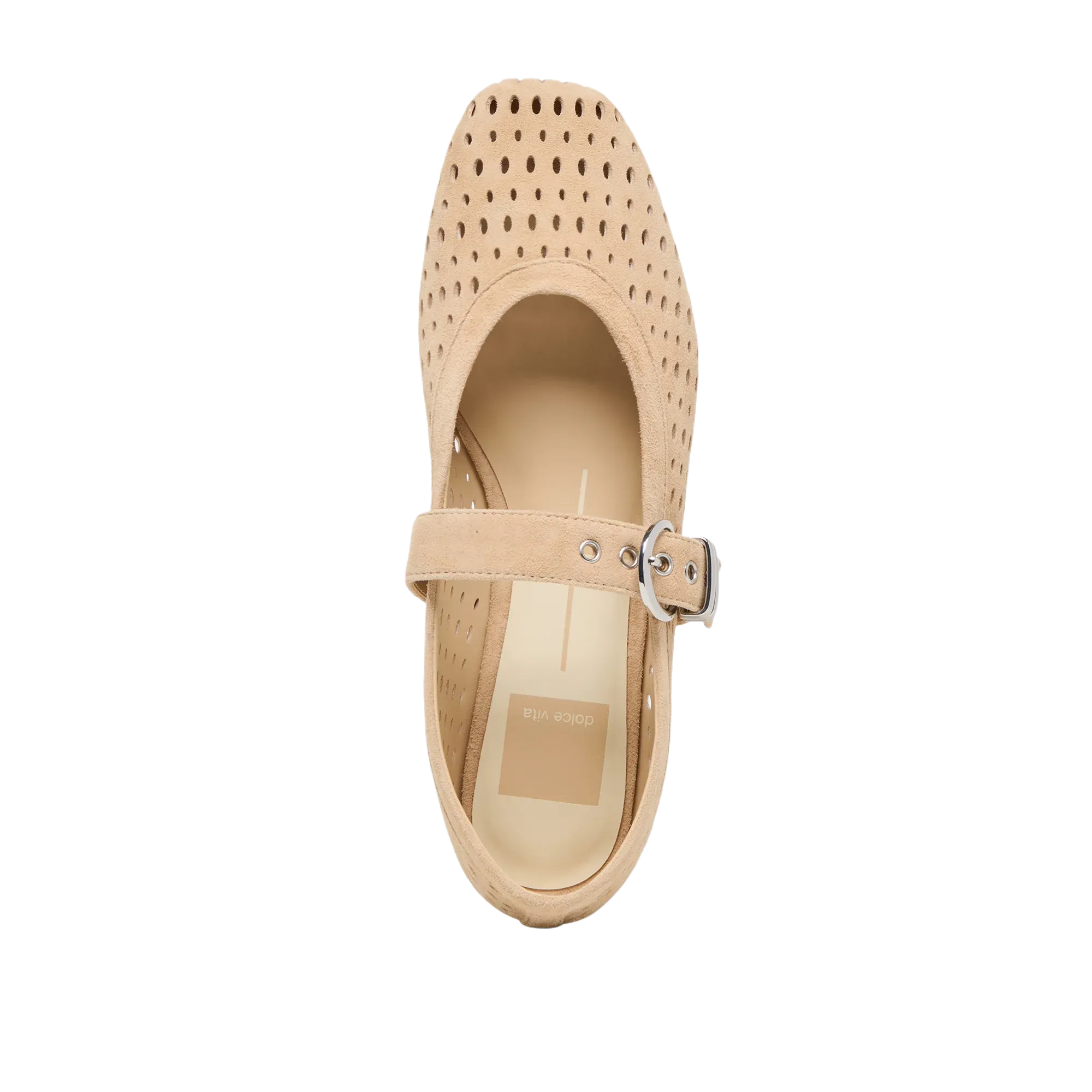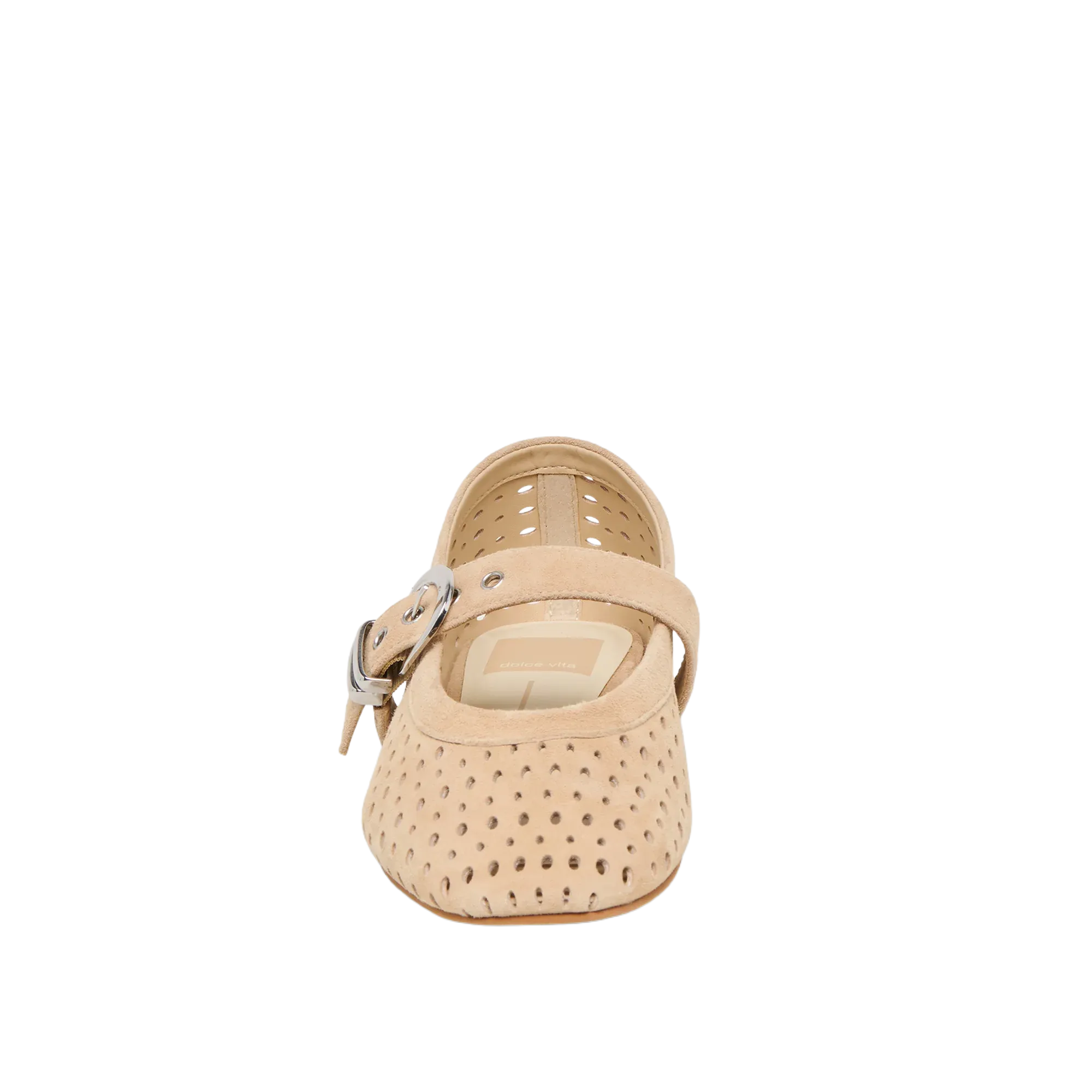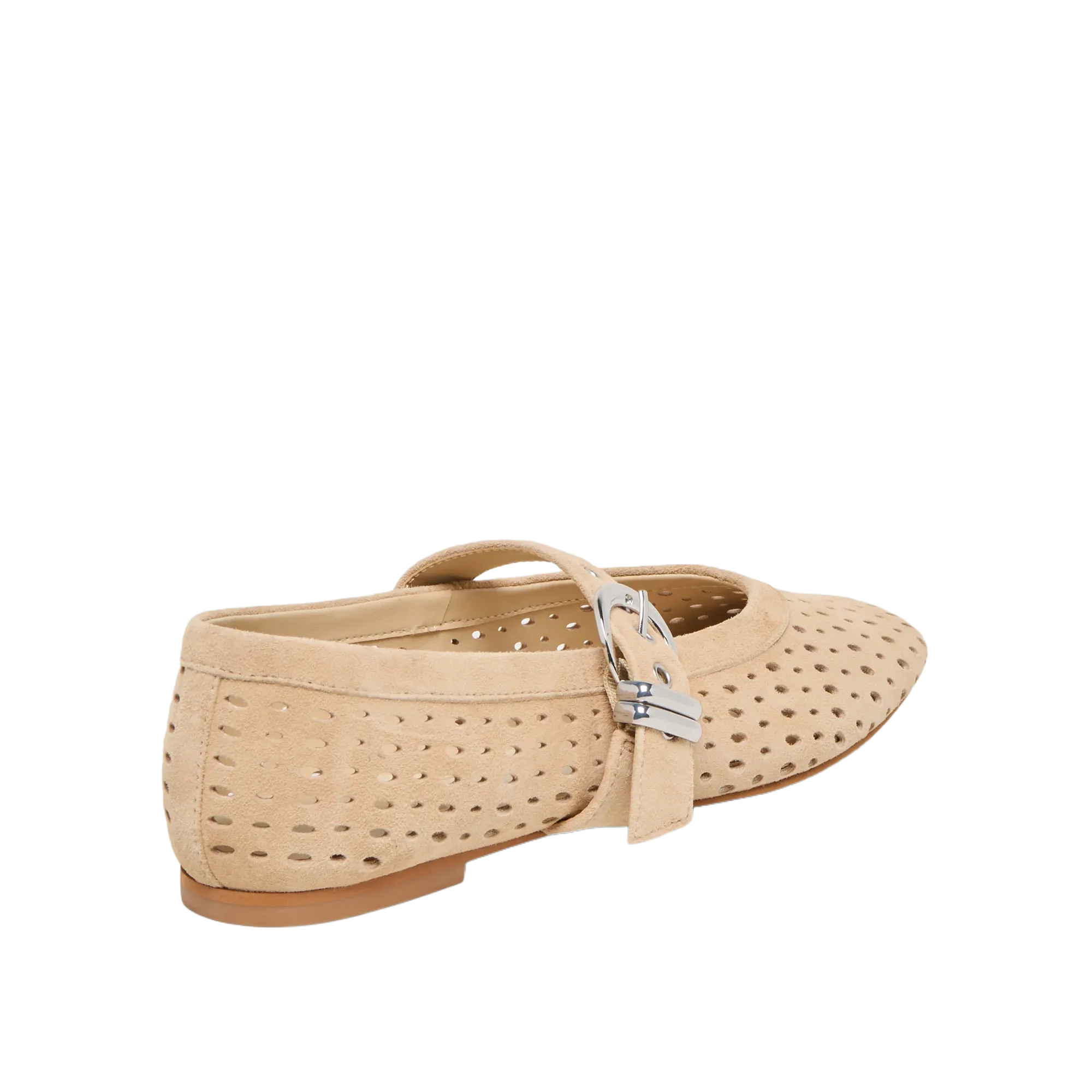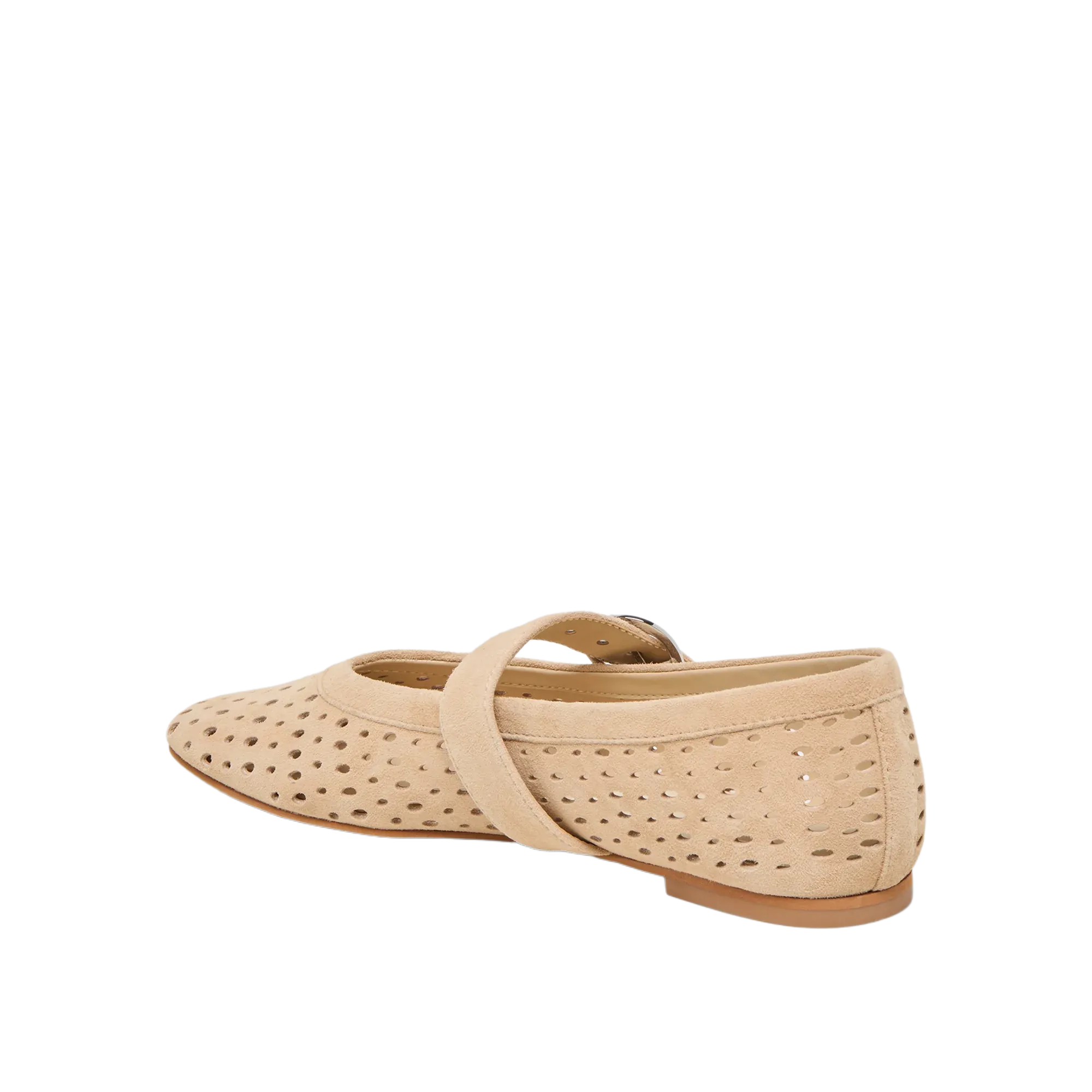 MIKEL makes a statement out of her mary-jane design with a bold metal buckle. This sustainably-crafted flat boasts sustainable materials and a bevy of colorways in perforated suede for one on-trend and versatile ballet flat.