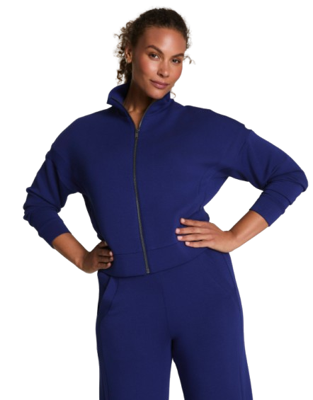 Our SPANX® AirEssentials Track Jacket is made with our ultra-drapey spacer fabric that's breathable, light-as-air, and oh-so soft. This front-zip design features classic track jacket details, like convenient front pockets, a full-length zipper, and classic mockneck for an easy, sporty look. Designed with 4-way stretch, it's the perfect easy layer to have on hand. Whether you're traveling, running errands, or lounging at home, this throw-on-and-go jacket will truly take you anywhere and everywhere.